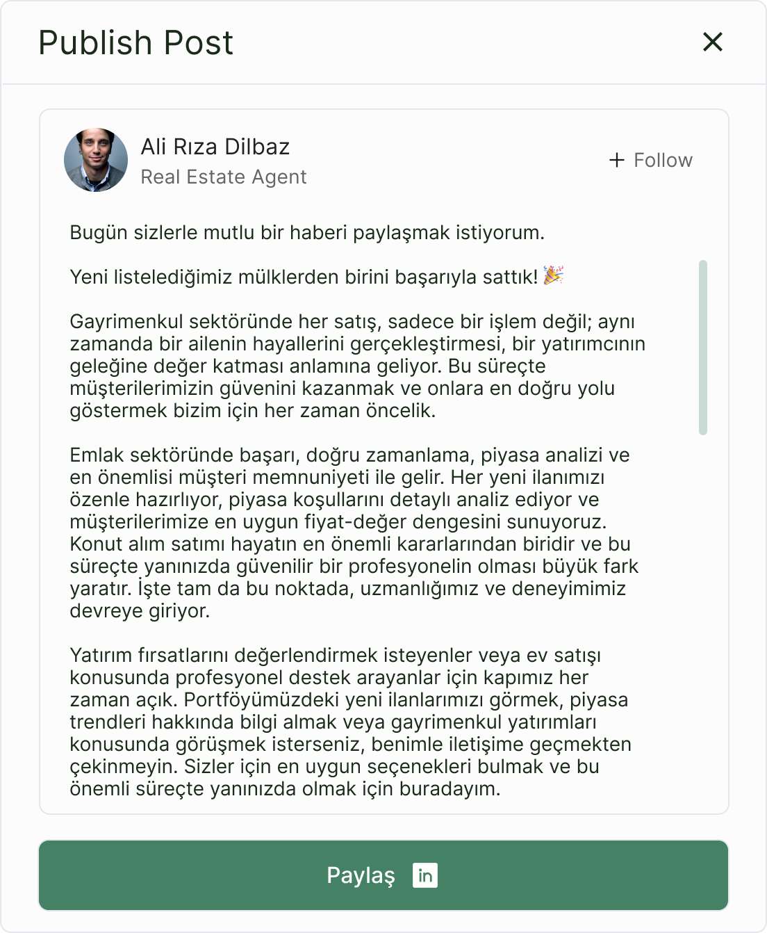 Mülk satışı, başarı hikayesi ya da kişisel marka. Neyi anlatmak istediğini seç, yeter.